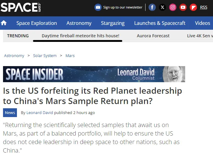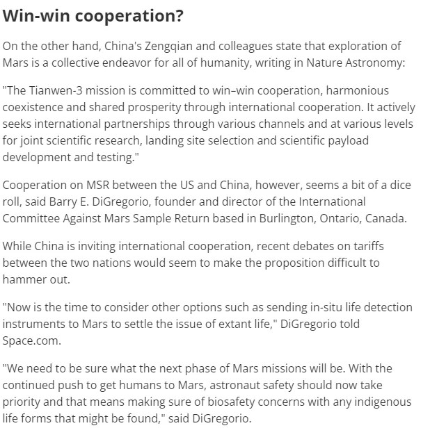 这会来自美媒在“美国是否正在将火星探索的领导权拱手让给中国的火星样本返回计划?”报告之中,又潜在的提到了合作的问题。